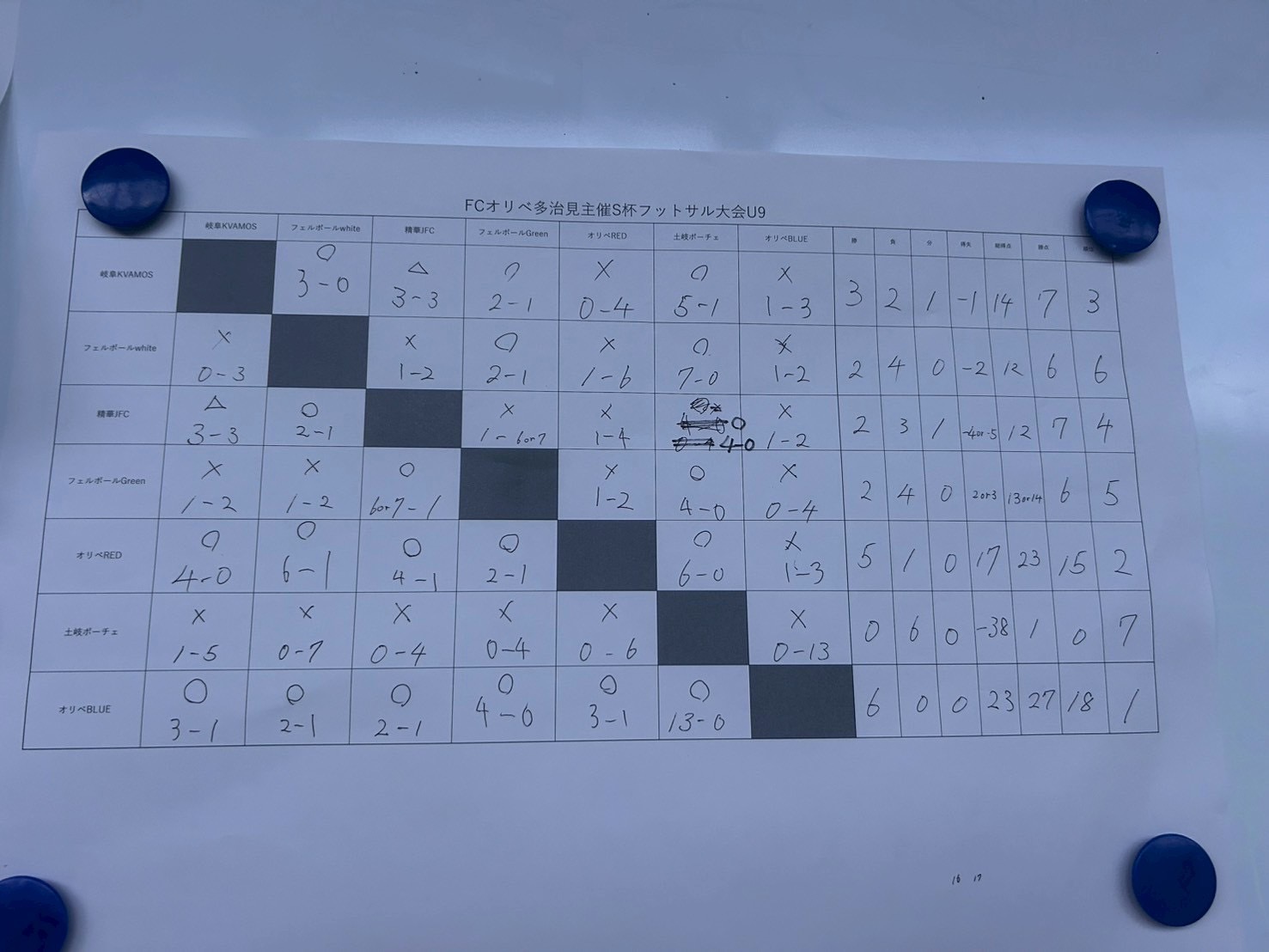 【 FCオリベ多治見主催オリベS杯U9フットサル大会】@OFSP オリベS杯U9フットサル大会(第107回suguru杯)開催されました‼️ 今大会は7チームの参加! 〜順位発表〜 優勝:オリベBlue(岐阜) 準優勝:オリベRED(岐阜) 3位:岐阜KVAMOS(岐阜) 4位:精華JFC(岐阜) 5位:フェルボールGreen(愛知) 6位:フェルボールWhite(愛知) 7位:土岐ボーチェ (岐阜)
